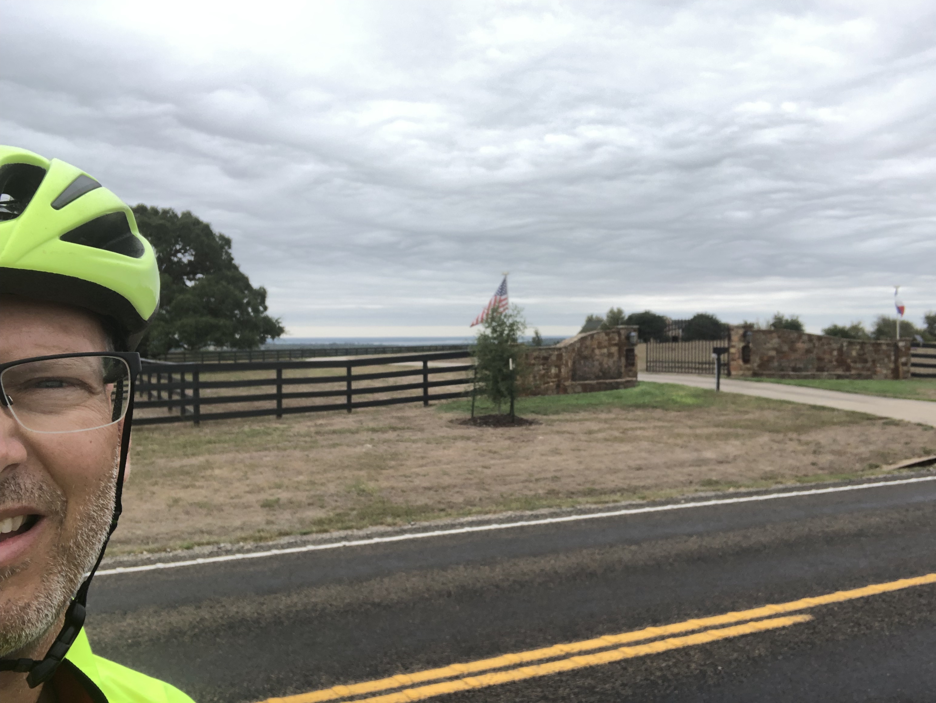 We rode from La Grange to Navasota; 69 miles with bicycling elevation gain of 3534 feet. The countryside had some nice views; cousin Duffy had a battle with a diesel truck not moving over for us while we had no shoulder; he put his arm out and looked to push the truck toward the center of the road. There was a lot of yelling too. Cousin Duffy is a tough guy! We stopped for lunch in the small town of Independence, and we ate at the independence general store. We both had the special: hamburger steak with gravy and fries. The eating area is claimed to be the social center of the town; we were lucky to be arriving at 1330, just as the kitchen was closing, to find one empty table. The proprietor, Mike, came out from the kitchen to speak with us and have us sign his notebook that he keeps for all the bicycle riders that stop.