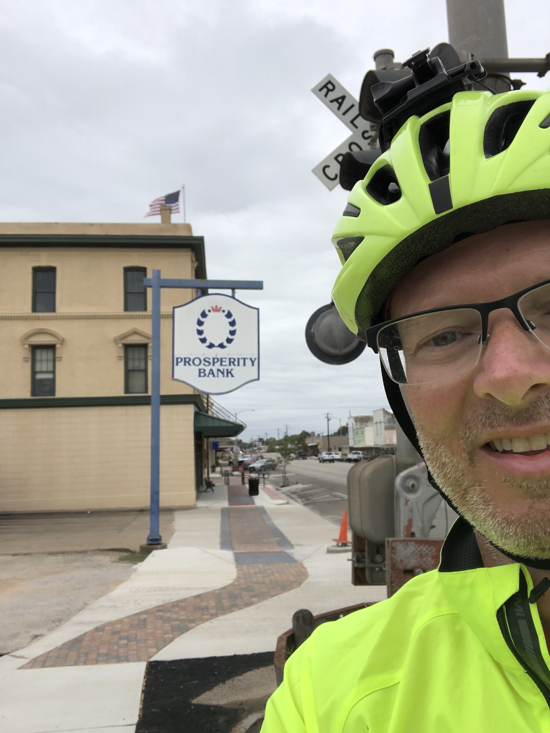 We rode 60 miles from Del Valle outside Austin to LaGrange and over 549 feet of bicycling elevation. The goal this day was to have some uninterrupted time at a computer. Our target was the town of Bastrop. While at Bastrop I visited the Law Office of Derek R Van Gilder on Main Street. Derek, Bradley, Sherry, Amanda, Holly, and Deedee were great hosts for half a day. We found that a part of the attorney wellness mix includes great staff, good time management, and time off to regenerate. Many thanks to Derek and his team. Just on the City limits of La Grange was a McDonald’s; as I approached I was exhausted, almost out of cell phone power, and thirsty and hungry for a snack. After I leaned, my bike against the building, I went to the door at 6pm and found it locked. Thinking that this town closes up even earlier than 7pm, I started to get on my bike. At that moment, the manager came to the door and said they needed to close the lobby, due to lack of employees available. She said that she saw me bicycling in and said that she had a space for me if I was patient with service; of course being a patient person, I accepted the invite. When inside, I met Lloyd Chapman, and his daughter Kelly of Houston, both veterans. Lloyd told me about his time in Germany as a driver for the base commander. Both were supportive and encouraging about the undertaking of bicycling across the United States; Kelly assured me that the hills would be non- existent east of Houston. I was appreciative and encouraged them both to get involved in a Legion post near them.