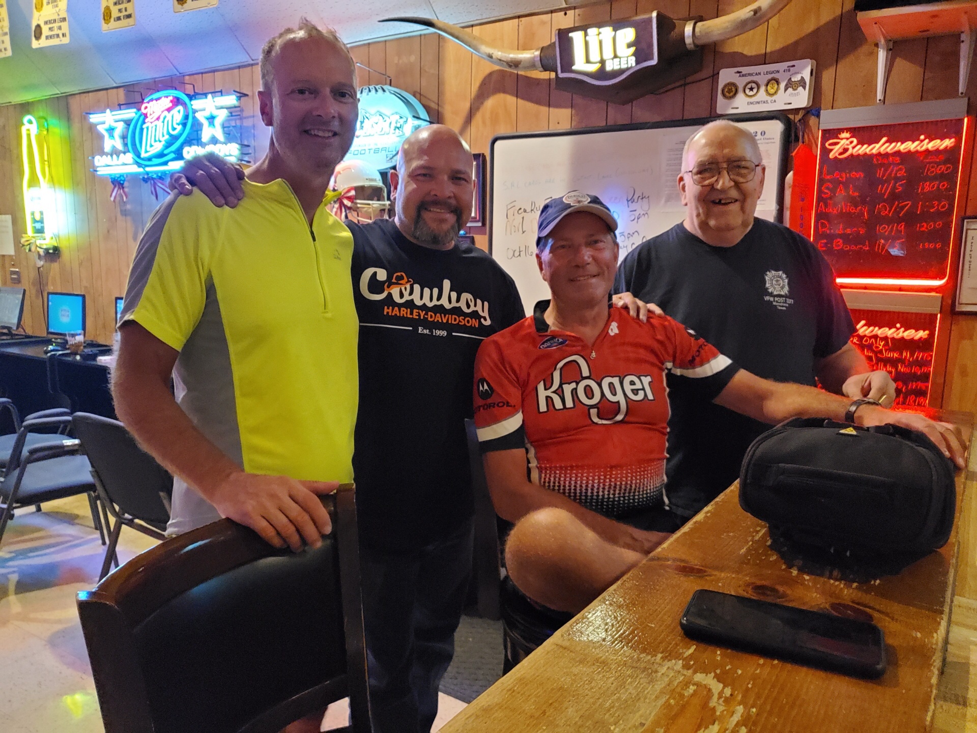 So, we rode through the last of East Texas and the thicket, and crossed the Sabine River into Louisiana. The first town we arrived at was Merryville; we spoke with a police officer who was directing traffic for a homecoming parade. The officer recommended the only restaurant in town for lunch- Stu’s Burgers- cousin Duffy and I went and had burgers; my bacon cheeseburger was delicious. Stu was genuinely interested in our biking adventures too. Merryville claims it is known as the Eucalyptus village for all of its natural Eucalyptus. The town of DeRidder was next on our ride; we stopped in at American Legion Post 27, chatted with the operations manager Brooke who told us all about hunting and castrating wild boar. We also had the opportunity to meet with commander Heather McWilliams who shared some of her work and struggles with veteran support programs. We hope to share more. Duffy and I made the decision to ride on to Oberlin; we arrived after sundown with a bike that lost a couple parts. With the help of a fine Oberlin Police officer, we negotiated a ride with Mr. Curly and his wife Mary and their pickup and our bikes to the nearest hotel in the Town of Kinder -5 miles down the road. We are thankful for their help.