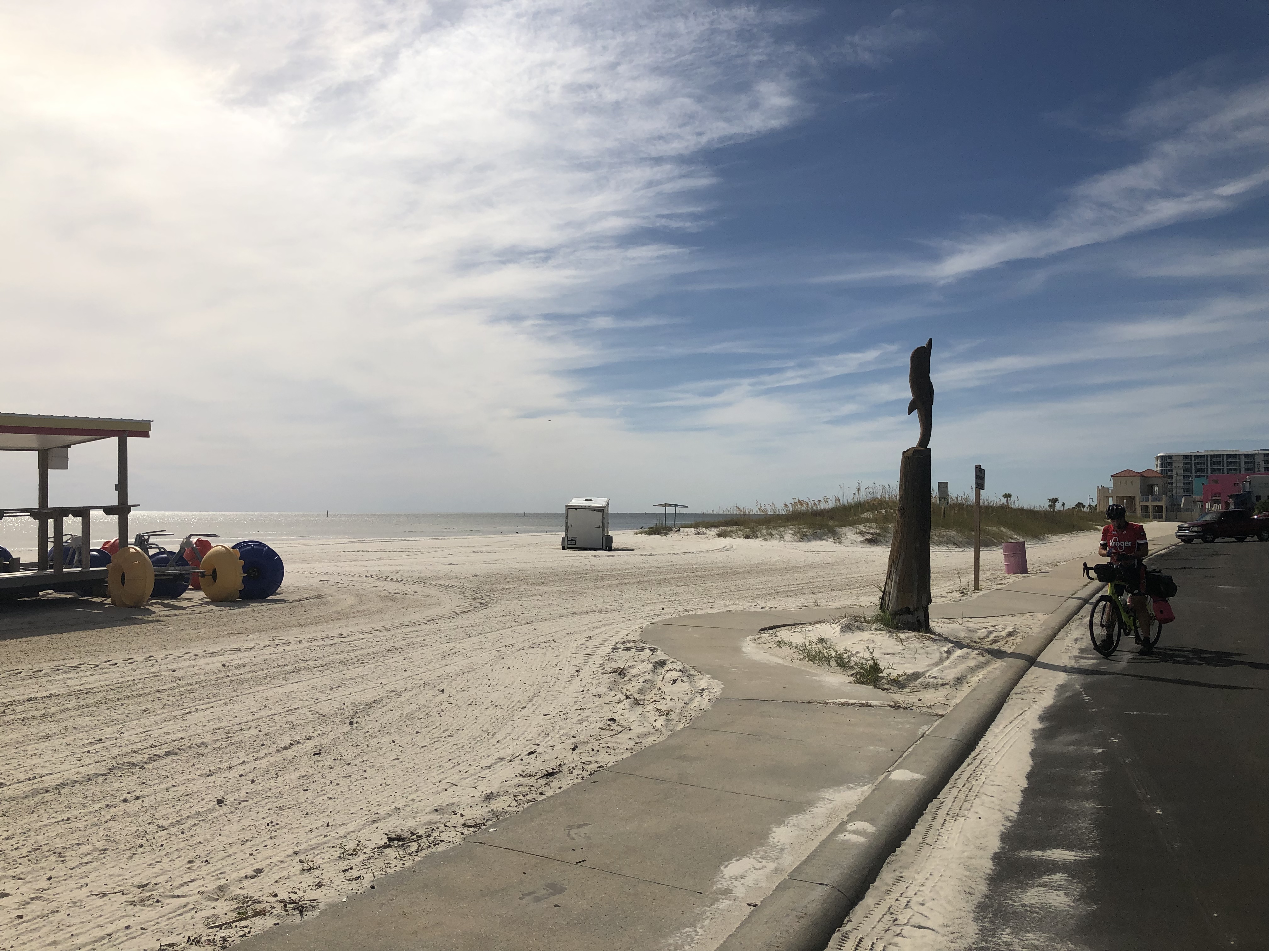 We rode from Bogalusa, LA to Biloxi, MS for 82 miles and 2188 feet of bicycling elevation gain. LA gasoline as low as 2.03 near border of MS. When approaching downtown Biloxi, I saw the Waffle House for the first time on this journey. We got a great price at the Hard Rock Hotel, so we stayed there. At around 1700 we went